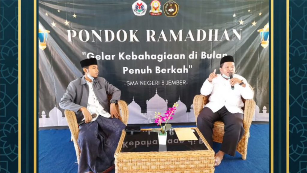 Pada hari kamis tanggal 6 Mei 2021, SMA Negeri 3 Jember menyelenggarakan Kegiatan Pondok Romadhon secara online ( daring ).Peserta wajib mengikuti live streaming mulai jam 08.00 dan mengumpulkan tugas maksimal jam 12.00 di link absensi.