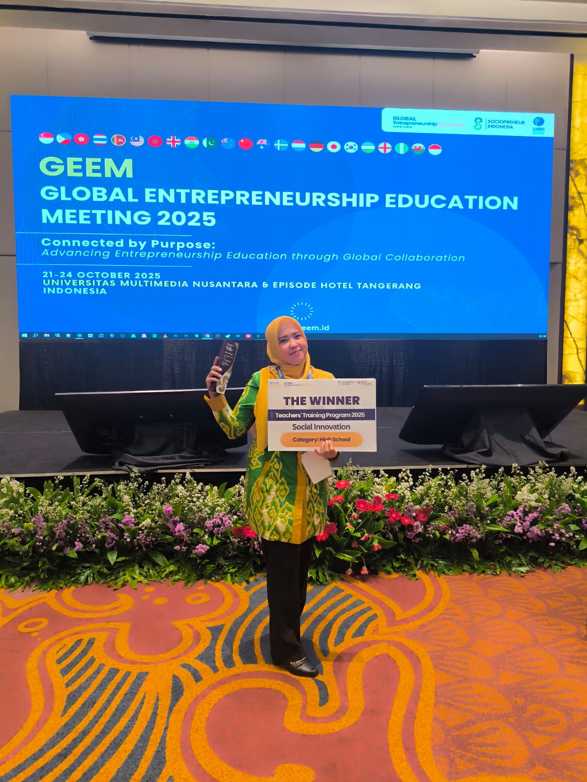 Atas prestasi gemilang tersebut, Ibu Puspita Setyo Palupi, S.Pd menerima undangan resmi untuk hadir sebagai perwakilan guru Indonesia dalam kegiatan Global Entrepreneurship Education Meeting (GEEM) 2025 yang diselenggarakan oleh Sociopreneur Indonesia di bawah jaringan UNESCO Entrepreneurship Education Network (EE-Net).