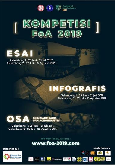 Himpunan Mahasiswa Teknologi Industri (Himalogin) Institut Pertanian Bogor, mengadakan kegiatan Lomba Essay, Infografis dan Olimpiade Sains dan Agroindustri yang merupakan rangkaian kegiatan dari “Festival of